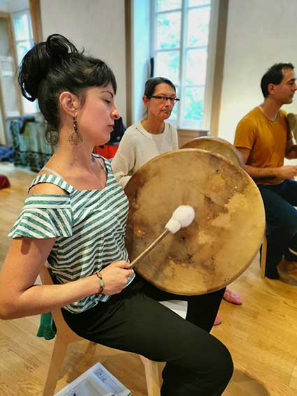 Stage de 3 jours sur l’approche sensible, ludique et intuitive du tambour dans un cadre personnel, ou pour pratiquer une relaxation par les sons. Vous aborderez tous types de dialogues créatifs possibles entre vous-même, le tambour et les éléments invisibles autour de nous. Ce stage n’est pas purement ‘chamanique’. Il sera aussi proposé de travailler la voix, le corps, le rythme, le jeu percussif ...